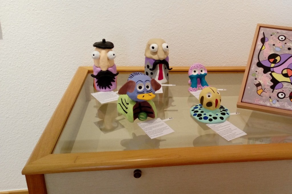 For this occasion, I presented a selection of my latest acrylic paintings alongside a series of whimsical ceramic sculptures. Each piece reflects my continuing exploration of abstraction, symbolism, and playful surrealist forms.