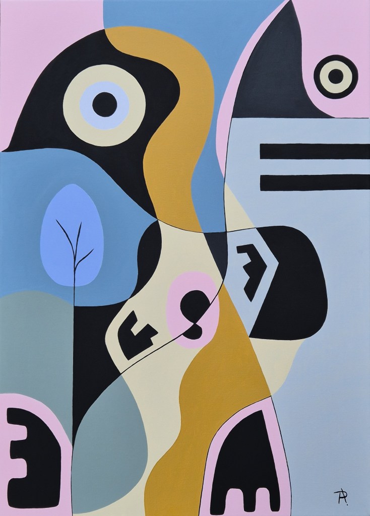 This canvas ( acrylic on canvas 70 x 50 cm) was born while listening to Junior Mance’s interpretation of ‘Whisper Not’. Shapes and colors unfold like muted notes — soft, abstract, yet resonant. It is a dialogue between silence and sound, between stillness and rhythm.